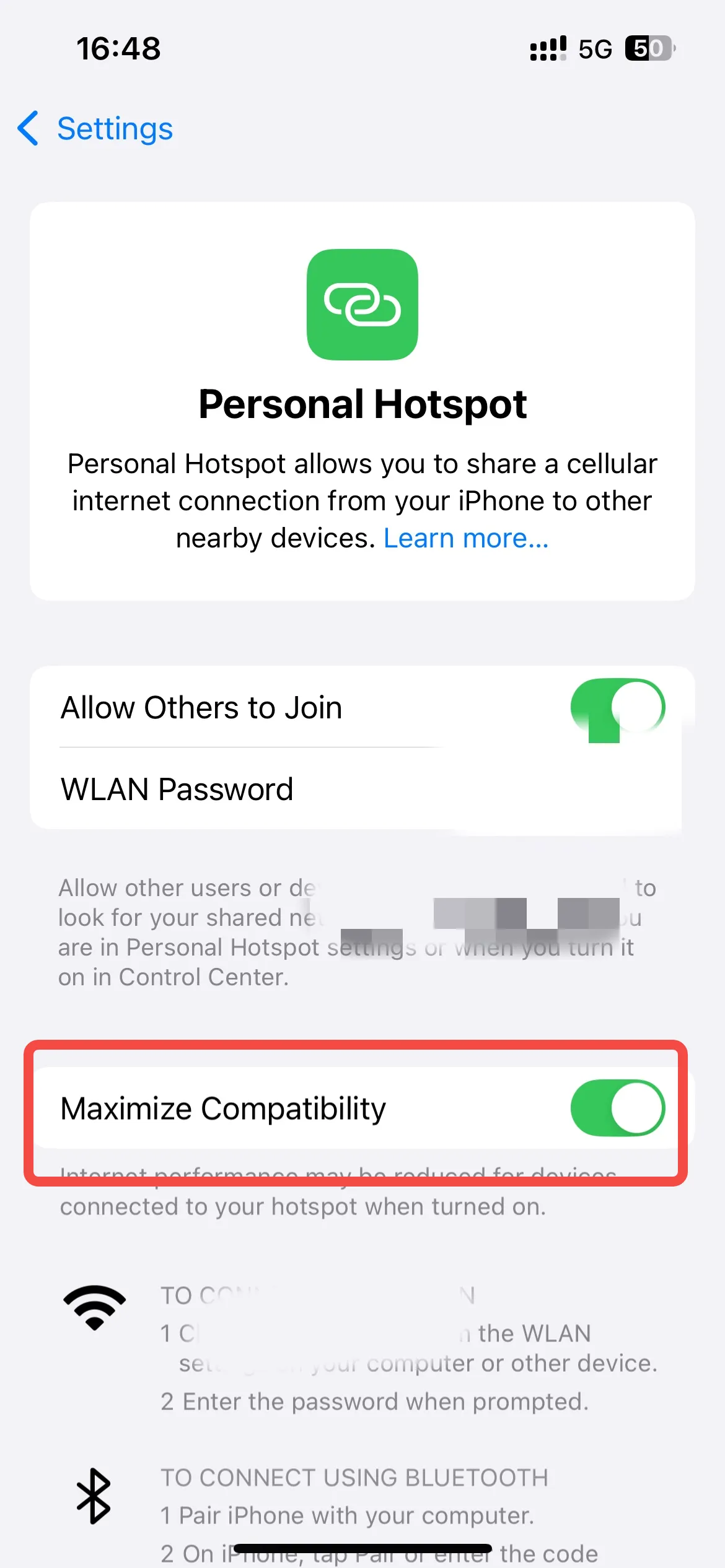 Tips: Some users with older iPhone 11 models do not have the [Maximum Compatibility] option in [My Hotspot], so their hotspots can be searched but not connected, indicating a compatibility issue.