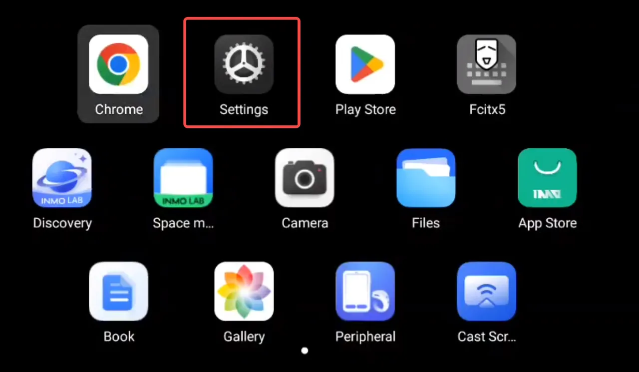 Section titled “Part 1 Device Info & Settings”① On the glasses desktop, swipe to the [Settings] app icon and tap it to enter the Settings interface.