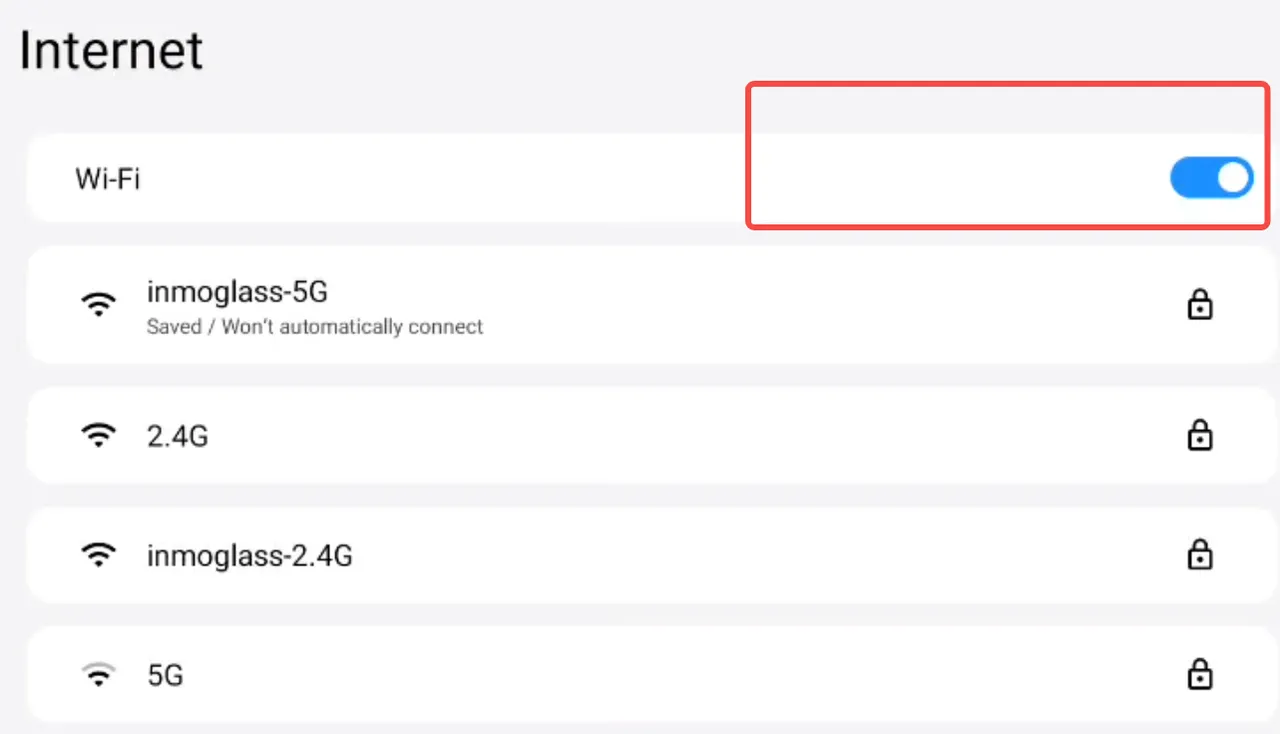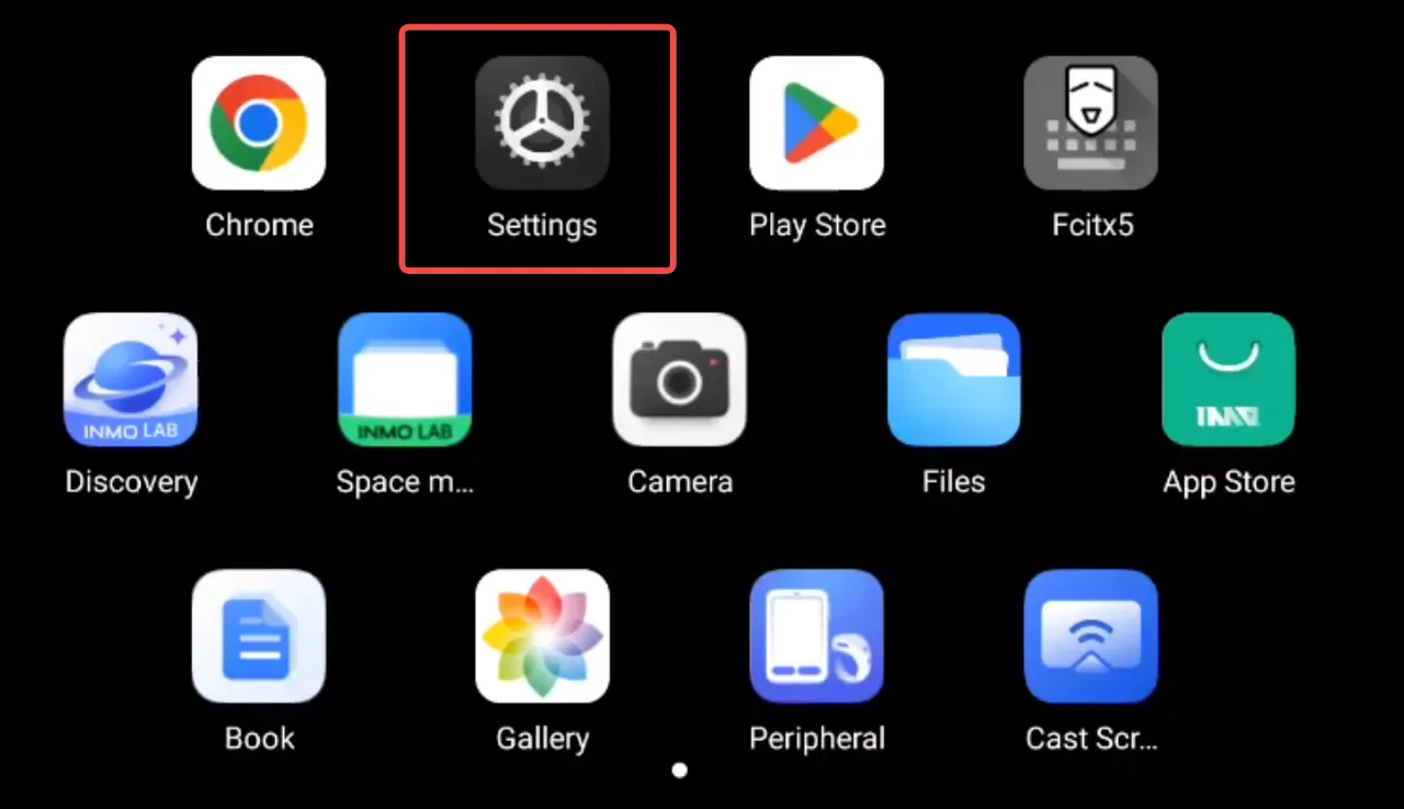 Section titled “Part 5 - Setting Up the Network and Internet ”- On the glasses desktop, swipe to the [Settings] app icon and tap it to enter the secondary Settings interface.