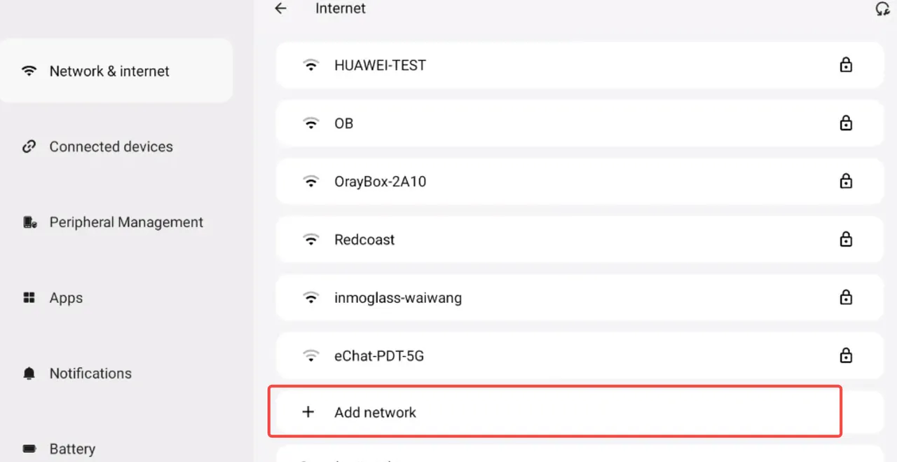 - Scroll to the bottom of the WiFi list → tap “Add network manually”.