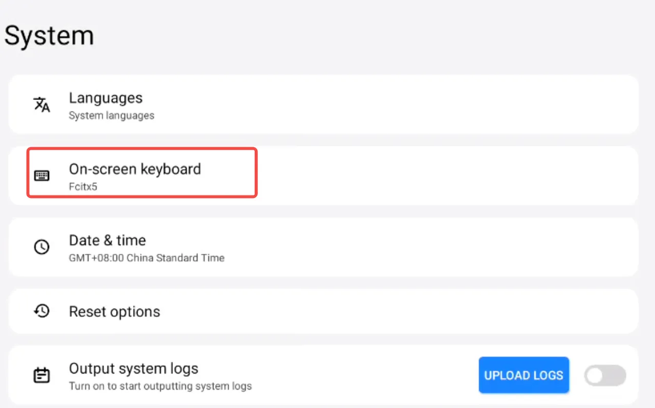 ① Tap “System” → “On-Screen Keyboard” to select the desired input method keyboard.