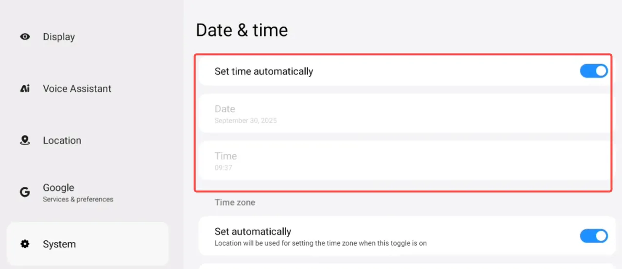 ② “Date and Time” → Allows setting the time, date, time zone, and time format.