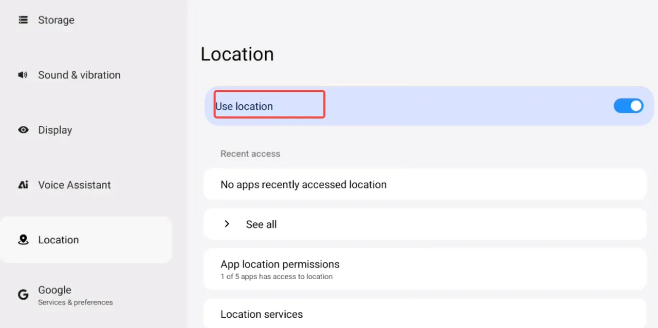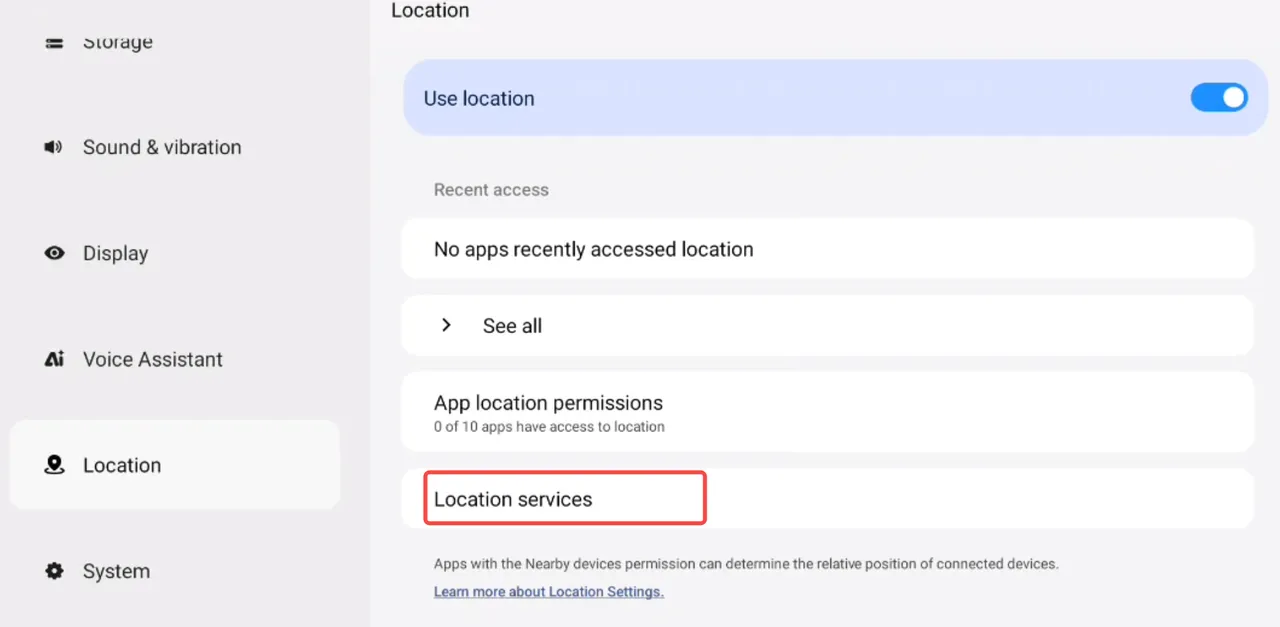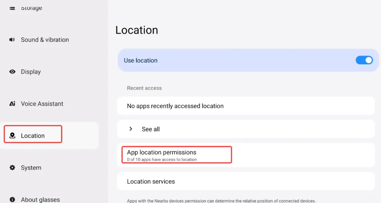 ② Tap “Location” → After enabling Location, you can view apps that have been granted location permissions.