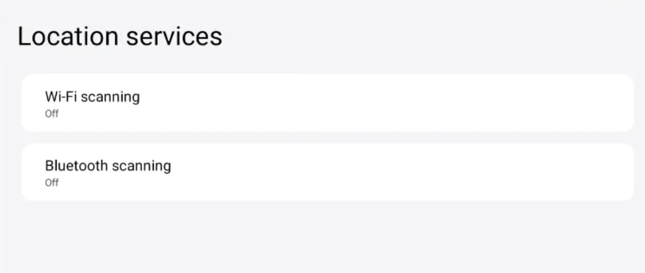 ② Location Services → Once enabled, it allows WLAN and Bluetooth to scan for nearby WLAN networks and devices at any time.
