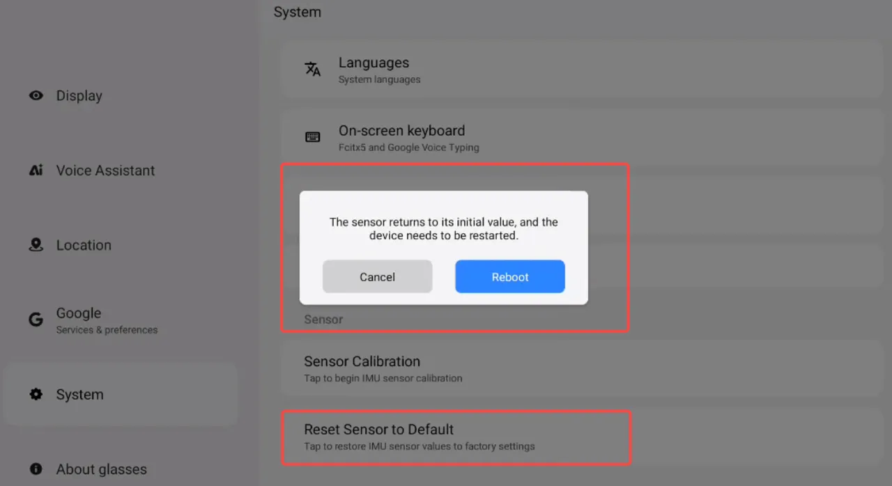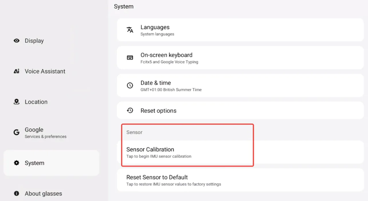 ② Tap “System” → “Sensors” → “Sensor Calibration”. A prompt sound will play after successful calibration, and a restart is required for the changes to take effect.