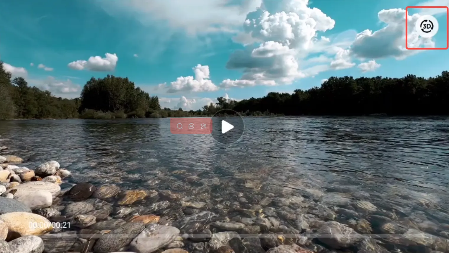 Section titled “Step 3 Activate 3D Mode”Open the video, and click the 3D icon in the upper right corner to enter the 3D cinema mode.