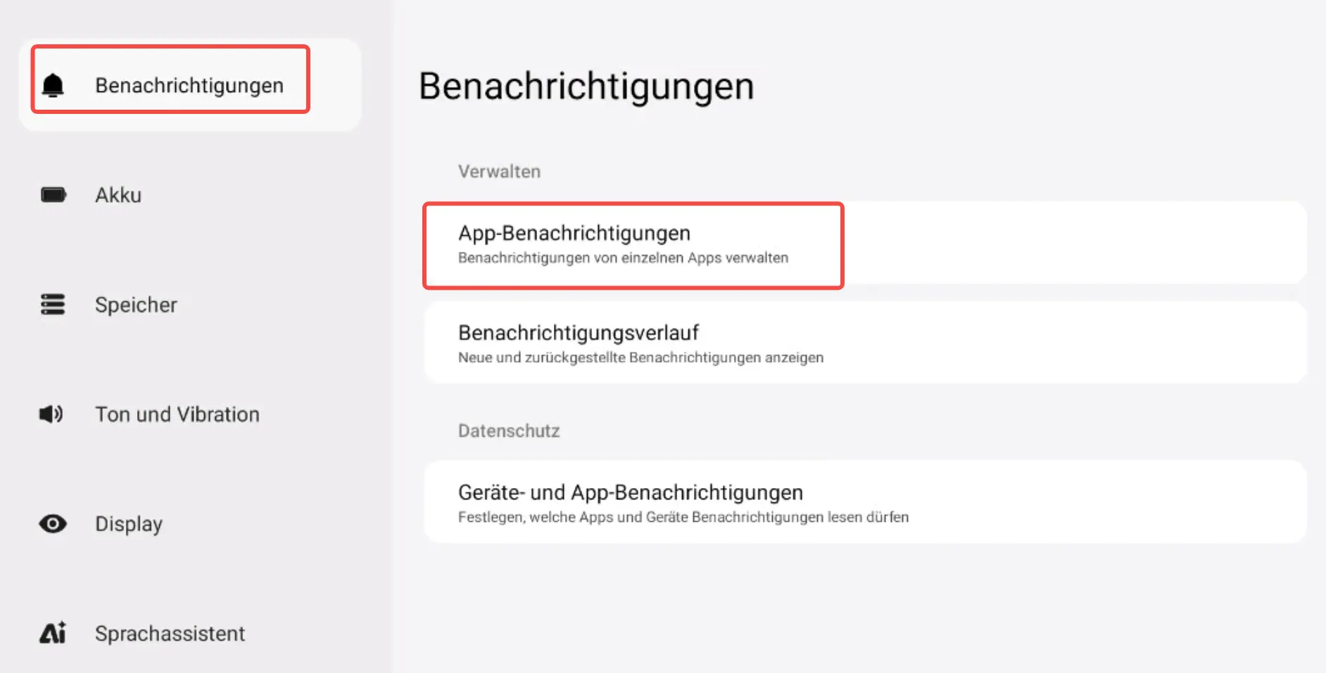 ② Tippen Sie auf “Benachrichtigungen” → “App-Benachrichtigungen”, um Benachrichtigungen einzelner Apps zu steuern.