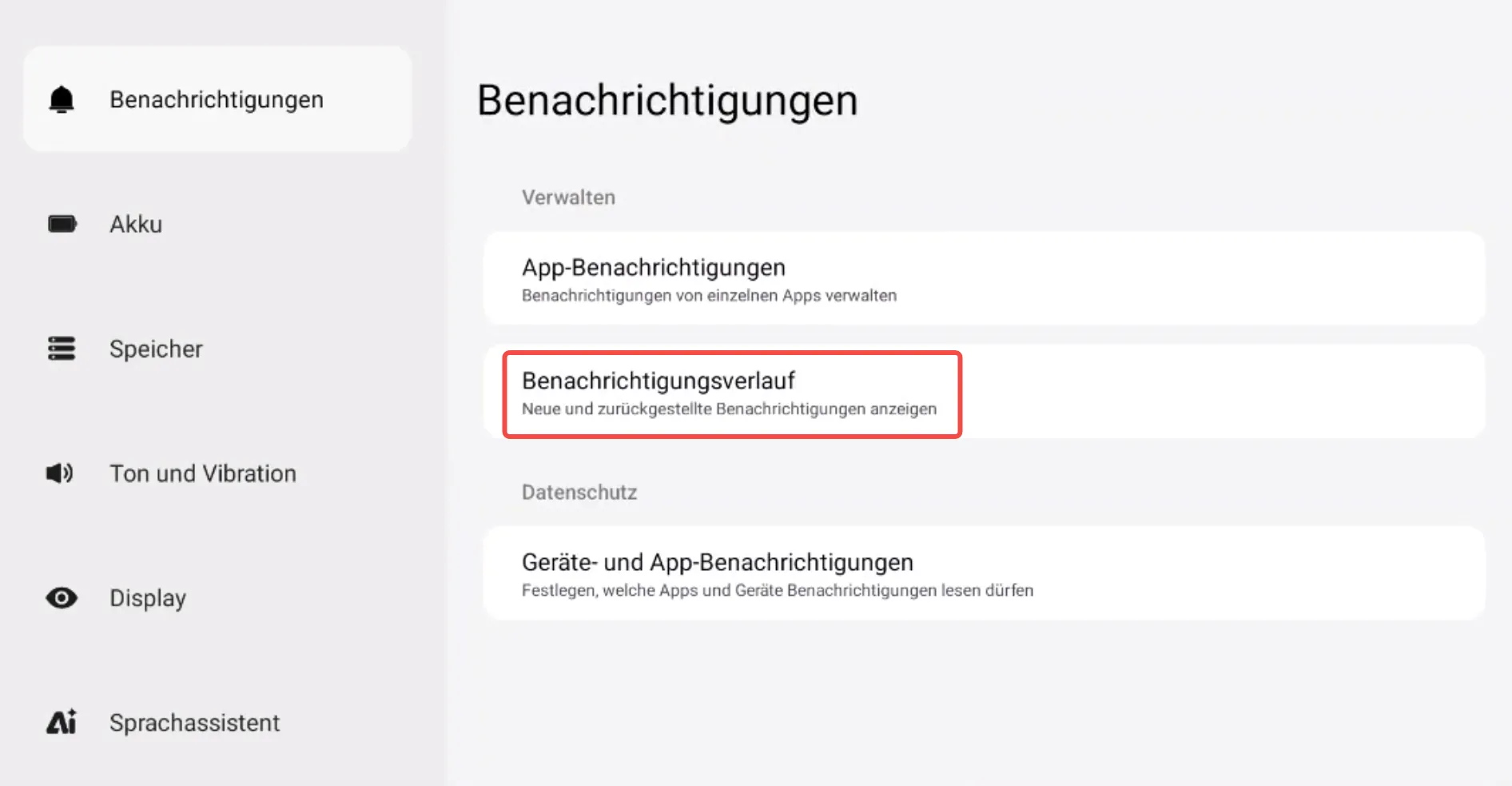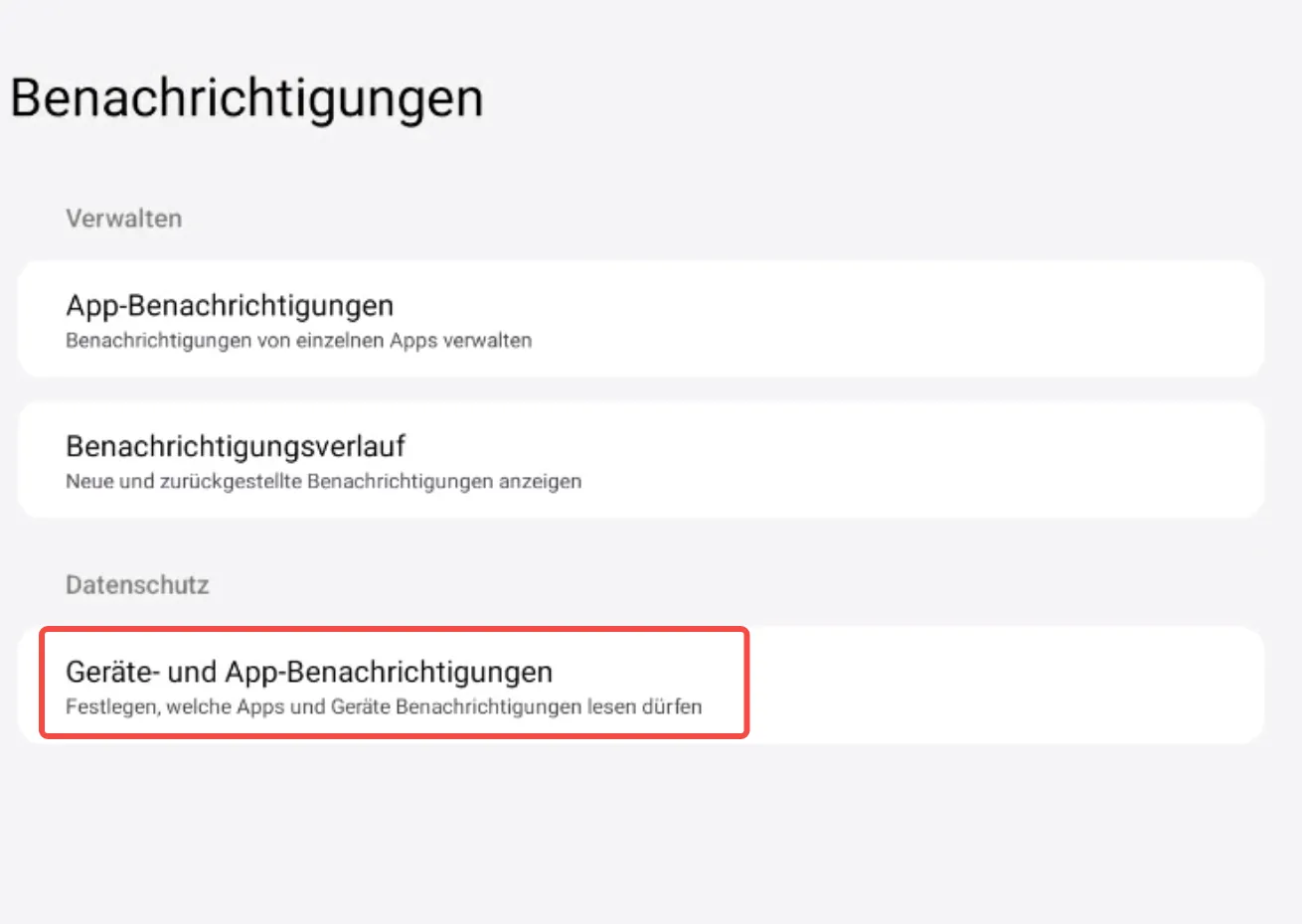 ② “Benachrichtigungen” → “Geräte- & App-Benachrichtigungen” wird verwendet, um zu steuern, ob Apps und Geräte auf Benachrichtigungen zugreifen können.
