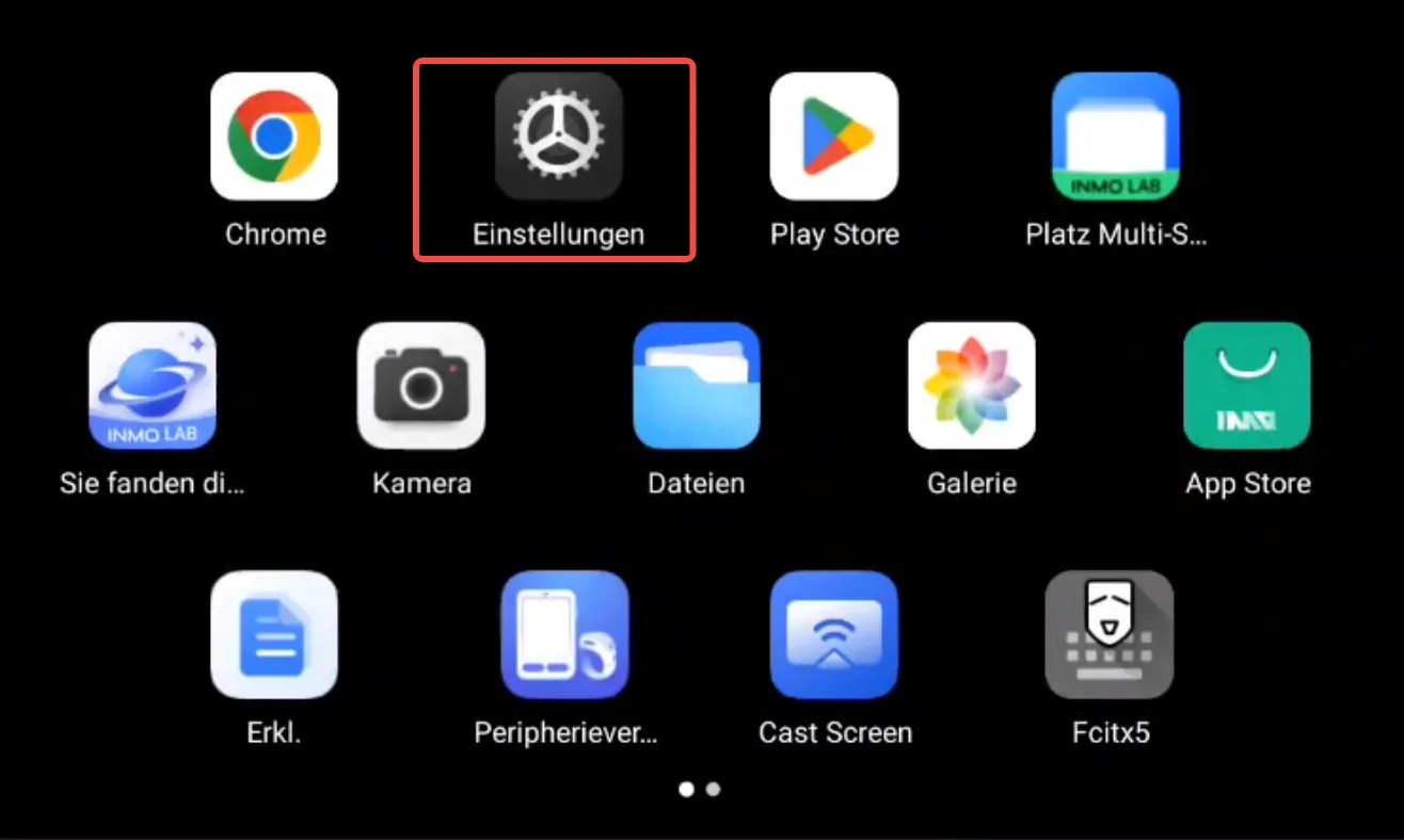 Abschnitt betitelt „Teil 1 Anzeige & Systemleistungsmodi“① Wischen Sie auf dem Brillen-Desktop zum Symbol der [Einstellungen]-App und tippen Sie darauf, um die Einstellungen-Oberfläche aufzurufen.