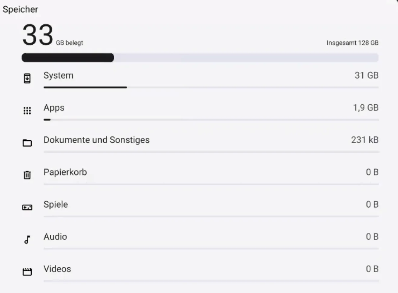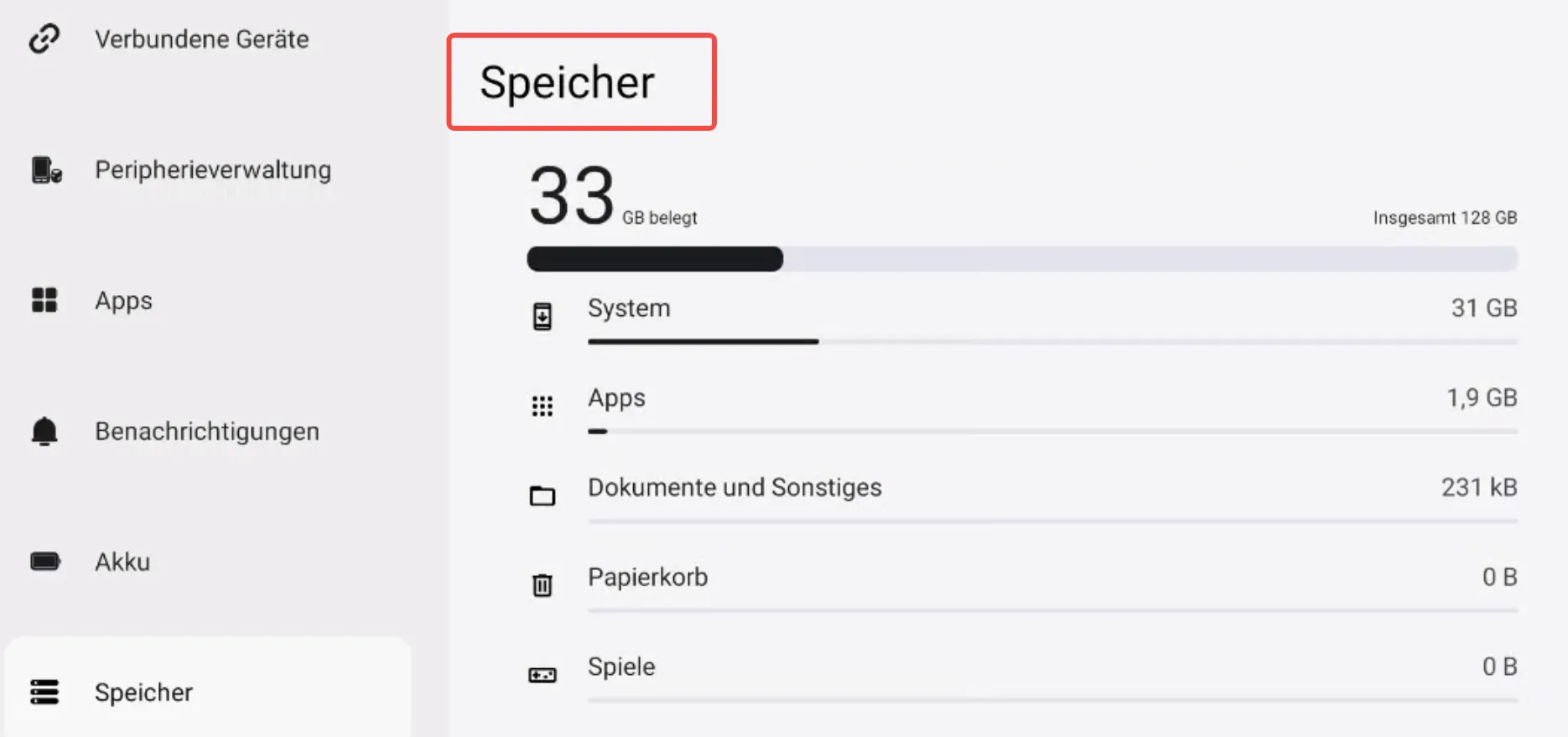 Hinweis: Dies ist ähnlich dem Speicherbereich auf einem Android-Telefon.
