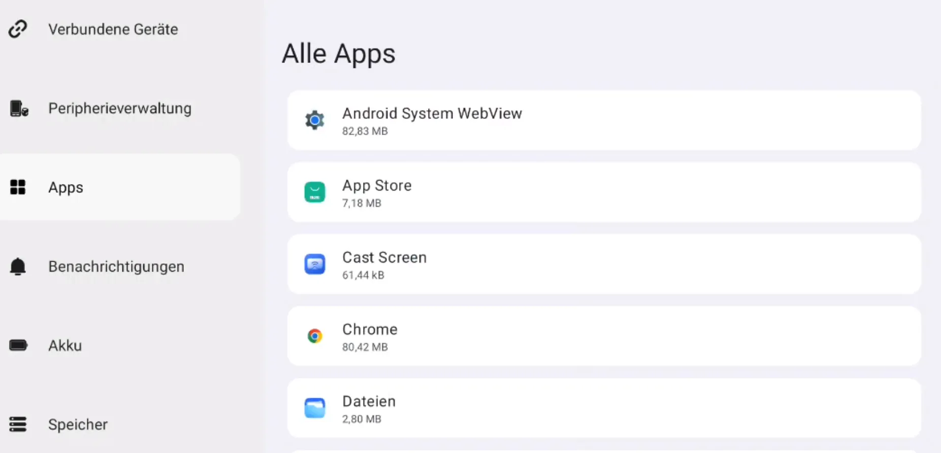 Abschnitt betitelt „Teil 2 App- & Datei-Speicherdetails“① Apps → Von Apps verwendeter Speicherplatz.