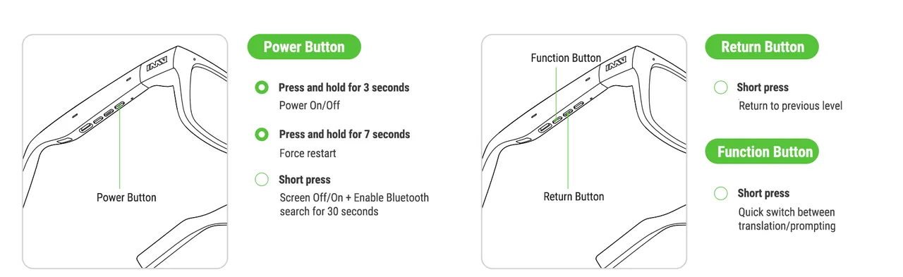 • Step 6: During the prompting process, you can use the ring or the right temple touchpad to control the up and down page, pause/continue, and return