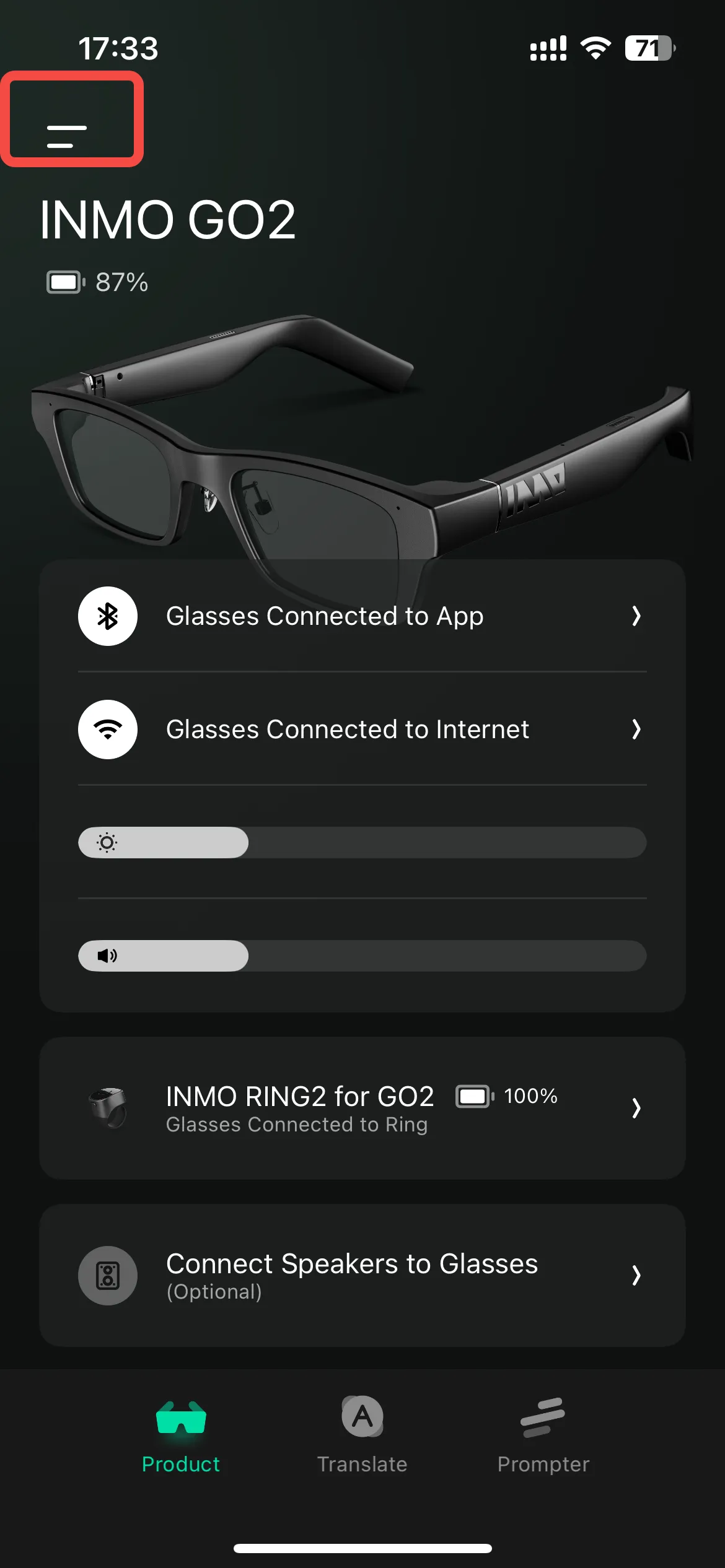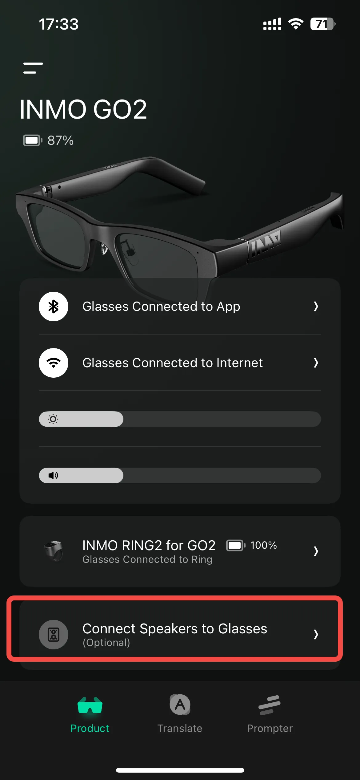 • Step 1: Turn on the glasses, open the INMO GO APP on your phone, and select the product INMO GO2