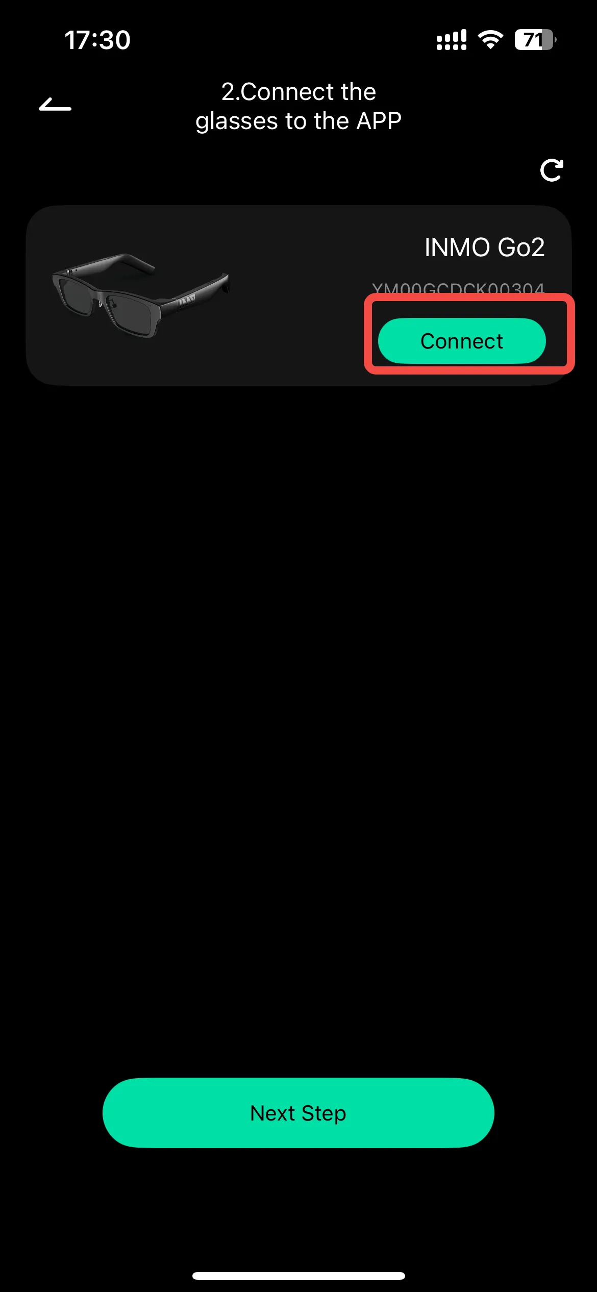 • Step 2: Click “Connect APP for glasses” “Connect”