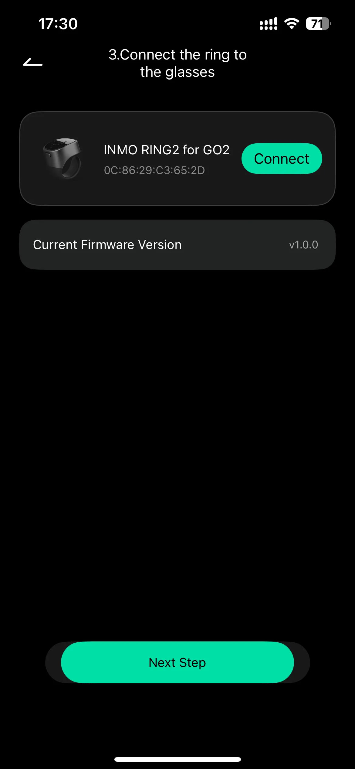 • Turn on the ring, open the INMO GO APP on your phone, click “Ring” to glasses