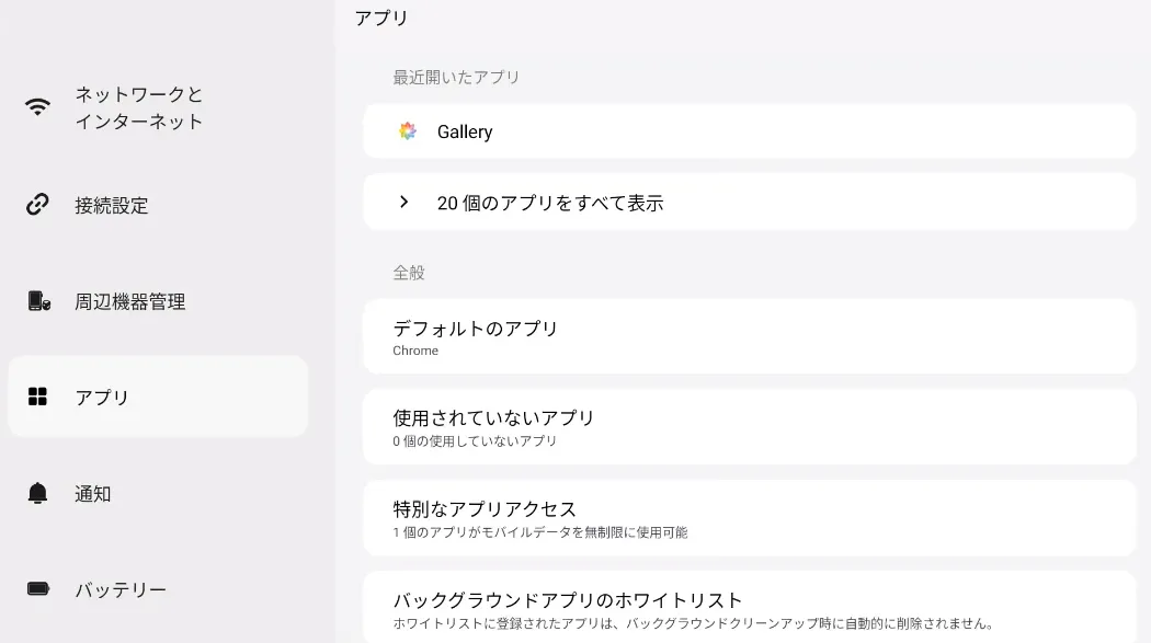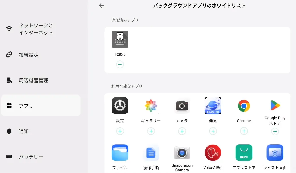 バックグラウンドアプリホワイトリストモード