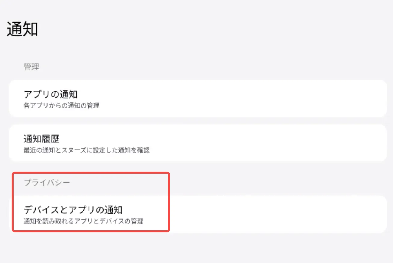 ② 「通知」→「デバイスとアプリの通知」は、アプリとデバイスが通知にアクセスできるかどうかを制御するために使用されます。