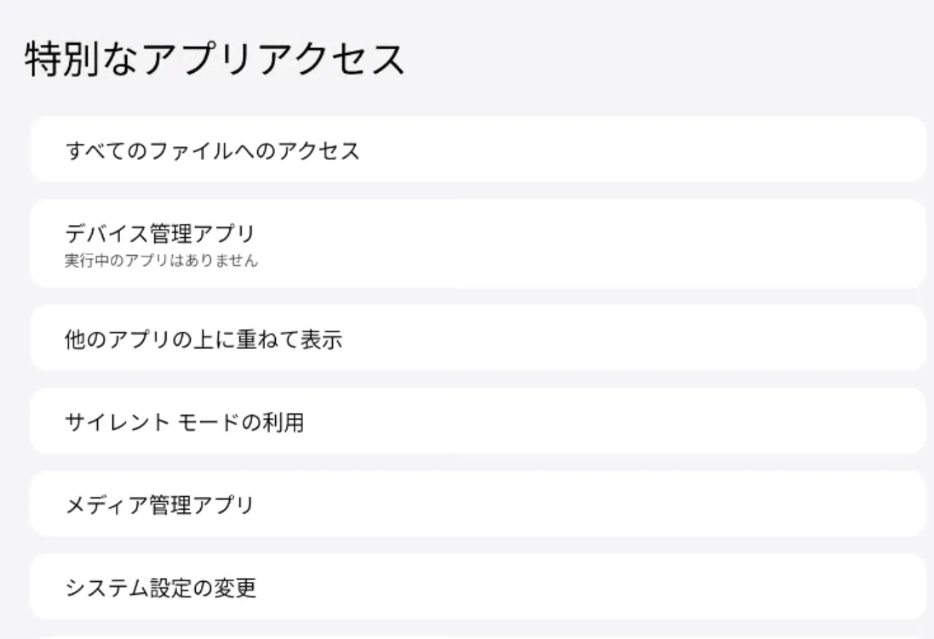 ② 特別なアプリのアクセスでは、アプリの権限を設定できます。
