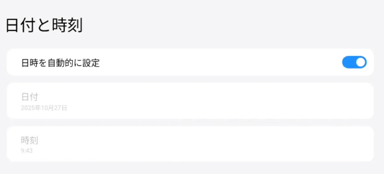 ② 「日時」→ 時刻、日付、タイムゾーン、および時刻形式を設定できます。