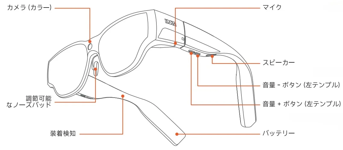 Section titled “ステップ2 装着と調整”快適になるようにメガネとノーズパッドを微調整してください。