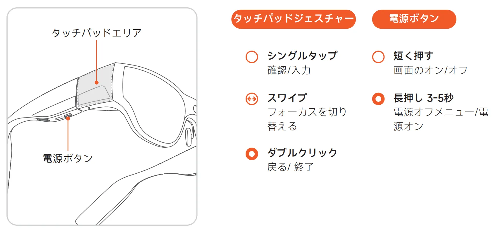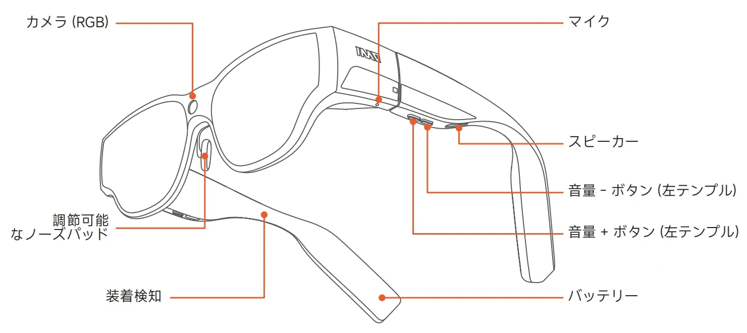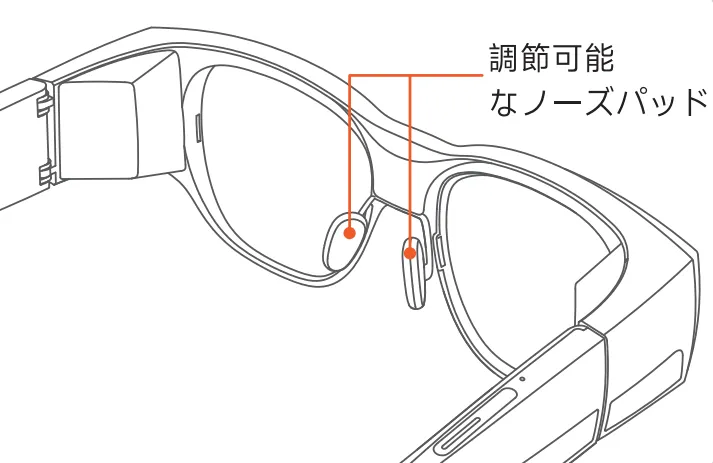 Section titled “ステップ 2 装着と調整”快適になるようにメガネとノーズパッドを微調整してください。